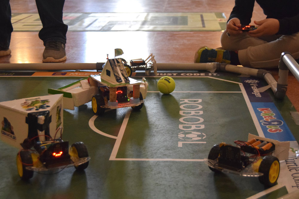 La Robobol és una trobada de robòtica educativa on els alumnes han de treballar en equips de dues persones per construir i programar els seus “Futbots”, petits robots dissenyats per jugar a futbol.